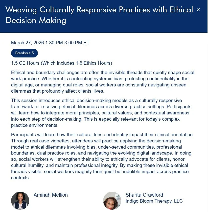 I’m honored to be co-leading a session at the NASW Virginia & Metro DC Annual Conference focused on the real-world intersection of culture, identity, power, and ethical decision-making in social work practice.
